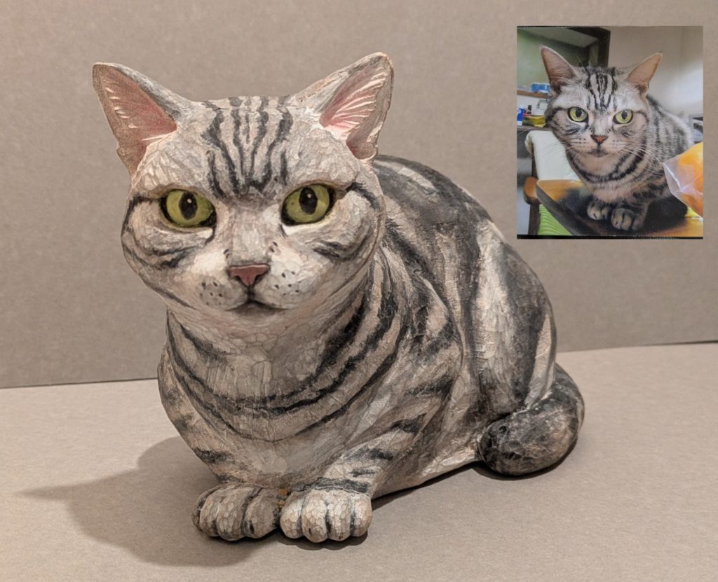 アメリカンショートヘアのクッキーくんをオーダーメイド制作しました。 ブログ 2025.11.132025.12.02 お客様の愛猫のアメリカンショートヘアのクッキーくんを木彫で注文制作させていただきました。 BlueskyCopy