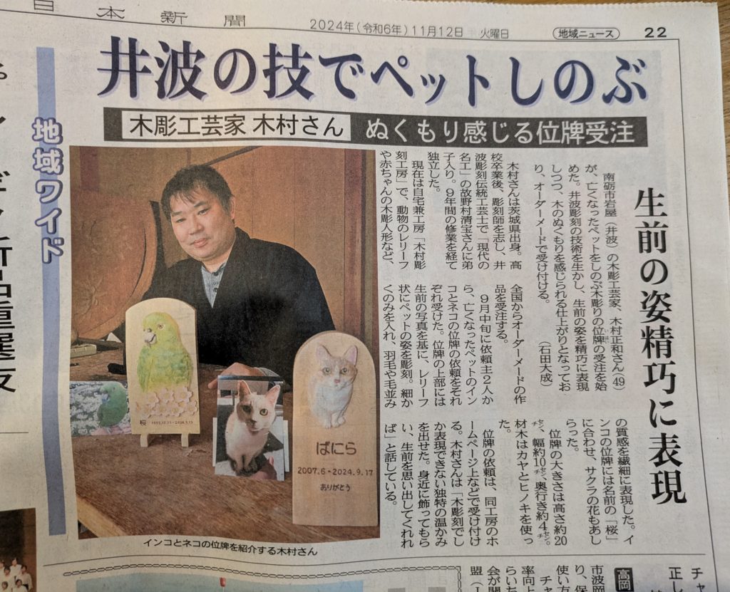 木彫のペットのご位牌