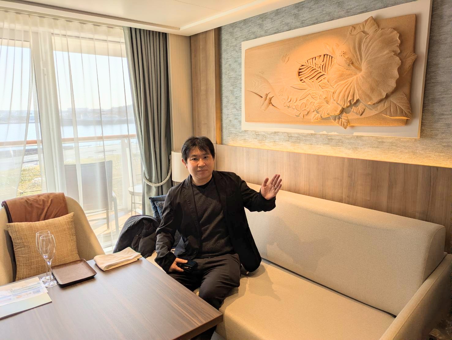 豪華客船の飛鳥ⅢのASUKAⅢ meets 47都道府県プロジェクトに参加し、ミッドシップスイート富山県の部屋に木彫の壁面装飾を提供しています。実際の部屋を見る事が出来るとの事で見学会に参加して来ました。素晴らしい豪華客船のスイートルームに飾られた自分の作品を見る事ができて感動しました。